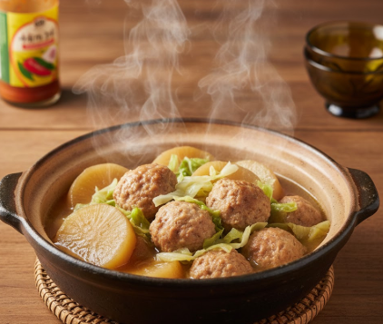 - 内容: 大根(真ん中)と「鶏団子ベース」を煮込みます。